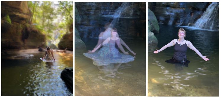 They shot this series in Wentworth Falls on a warmish, windy day. The images speak for themselves. The joy of watching Rose tell their story in place, of framing their vision and performing their ceremony was beyond what could be captured. The water was freezing, but in true Rose fashion, they jumped in anyway.